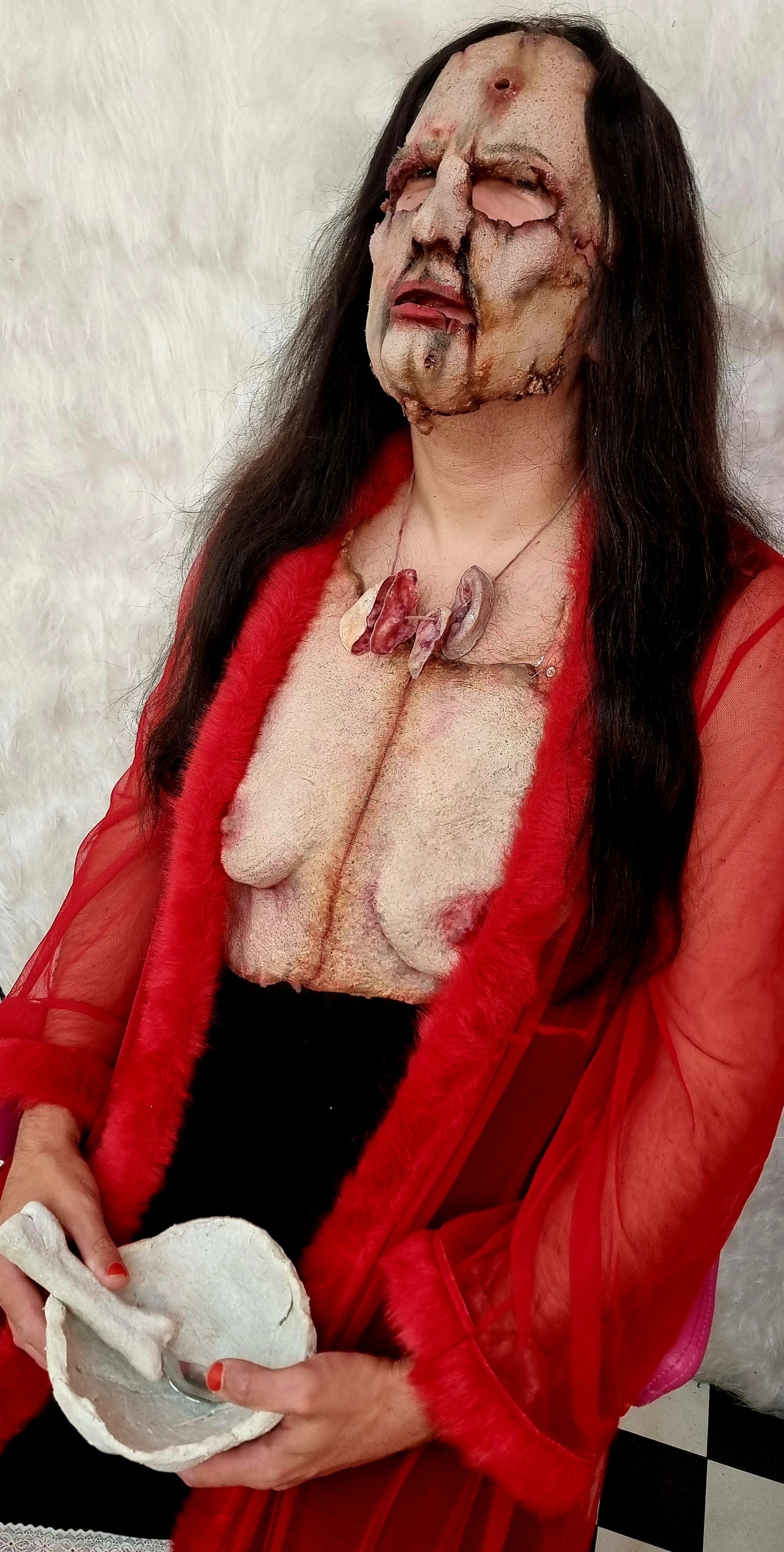 Enhance your horror costume with the Gore horror boob Body of Souls Chest Prosthetic, expertly crafted from durable latex for extended wear.